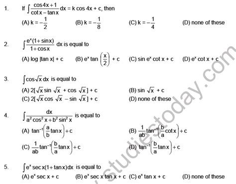 Read Indefinite Integral Multiple Choice Questions And Answers PDF